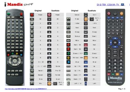 Inicio > Marcas > Mandos a distancia DIGITEK > Mando a distancia para DIGITEK CD14X-A > Distribución interactiva de teclas DIGITEK CD14X-A