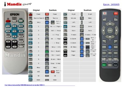 Inicio > Marcas > Mandos a distancia Epson > Mando a distancia para Epson 1491605 > Distribución interactiva de teclas Epson 1491605