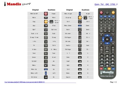 Inicio > Marcas > Mandos a distancia Open Tel > Mando a distancia para Open Tel OHC 3700 V > Distribución interactiva de teclas Open Tel OHC 3700 V