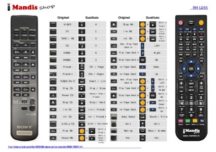 Inicio > Marcas > Mando a distancia para RM-U265 > Distribución interactiva de teclas RM-U265