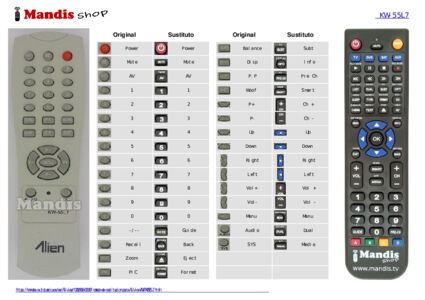 Inicio > Marcas > Mando a distancia para KW-55L7 > Distribución interactiva de teclas KW-55L7
