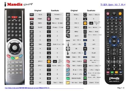 Inicio > Marcas > Mandos a distancia TIGER > Mando a distancia para TIGER Open VU 7 Mini > Distribución interactiva de teclas TIGER Open VU 7 Mini