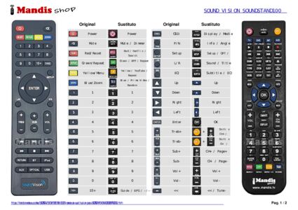 Inicio > Marcas > Mandos a distancia SOUND VISION > Mando a distancia para SOUND VISION SOUNDSTAND100 > Distribución interactiva de teclas SOUND VISION SOUNDSTAND100