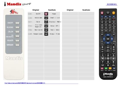 1. Observa las imágenes de los dos mandos a distancia: el original (a la izquierda) y el de sustitución (a la derecha).