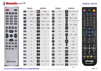 Inicio > Marcas > Mando a distancia para HCX6000 CHD MP > Distribución interactiva de teclas HCX6000 CHD MP