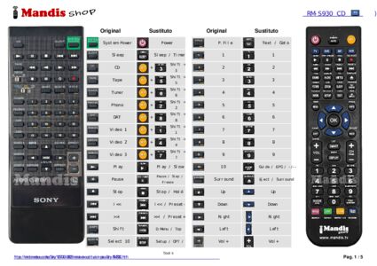 Inicio > Marcas > Mando a distancia para RM-S930 > Distribución interactiva de teclas RM-S930