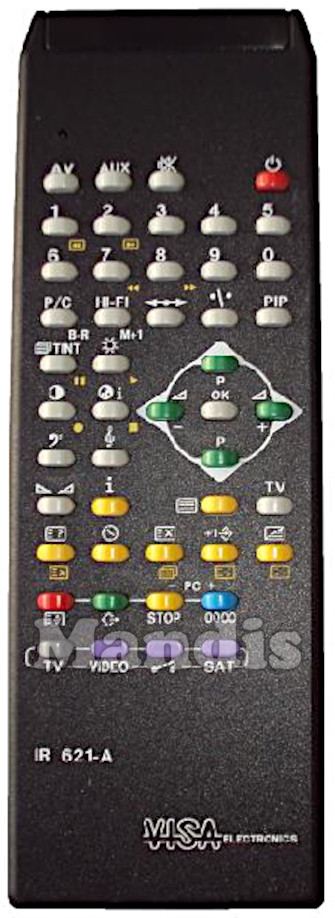 Mando a distancia original IR 621A que sirve para televisores como de las marcas VISA, VISA ELECTR.. Se trata de un modelo original de mando a distancia.