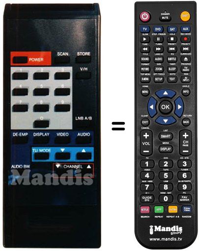 Mando a distancia que reemplaza al original en todas sus funciones. No se trata de una mando universal sinó de un mando que sustituye al original. Recibirá el mando completamente listo para hacerlo funcionar sólo necesita ponerle las pilas. No es necesario programarlo. Le damos total garantía de que el mando cumplirá con las mismas funciones del mando original.