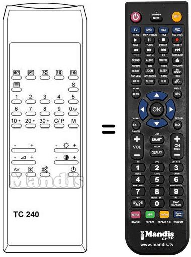 Mando a distancia que reemplaza al original en todas sus funciones. No se trata de una mando universal sinó de un mando que sustituye al original. Recibirá el mando completamente listo para hacerlo funcionar sólo necesita ponerle las pilas. No es necesario programarlo. Le damos total garantía de que el mando cumplirá con las mismas funciones del mando original.