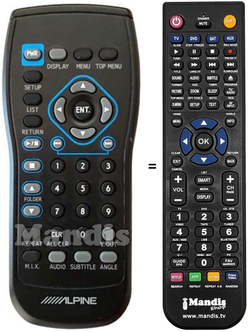 Mando a distancia que reemplaza al original en todas sus funciones.