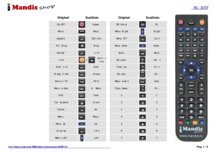 Este mando a distancia reemplaza completamente tu RC 305T y ofrece todas las funciones del original.