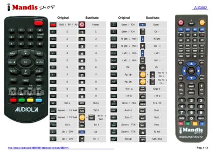 Inicio > Marcas > Mandos a distancia AUDIOLA > Mando a distancia para AUDIOLA NOT002