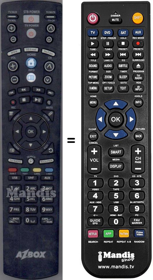 Mando a distancia que reemplaza al original en todas sus funciones.