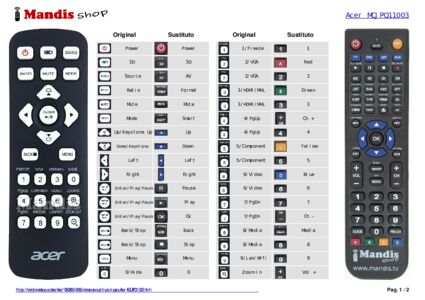 A continuación, le mostraremos la correspondencia entre cada uno de los botones del mando original y el botón que realiza la misma función en el mando de sustitución. En algunos casos, es posible que necesite presionar la tecla SHIFT antes de pulsar otro botón para realizar ciertas acciones. Estas funciones adicionales suelen ser poco utilizadas y se incluyen para facilitar su comprensión del nuevo mando a distancia, o porque el mando original tiene más botones que su equivalente.