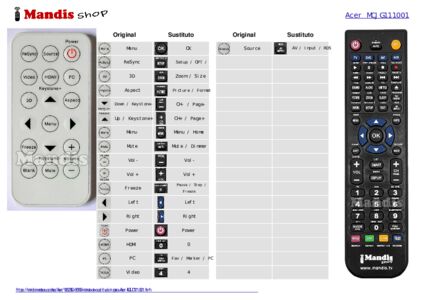 Se incluye un documento para ayudarte a usar el nuevo mando a distancia fácilmente, indicando la correspondencia de los botones.
