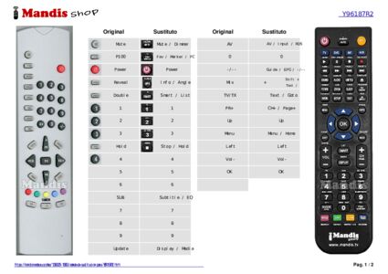 Este mando a distancia reemplaza completamente tu Y96187R2 y ofrece todas las funciones del original.