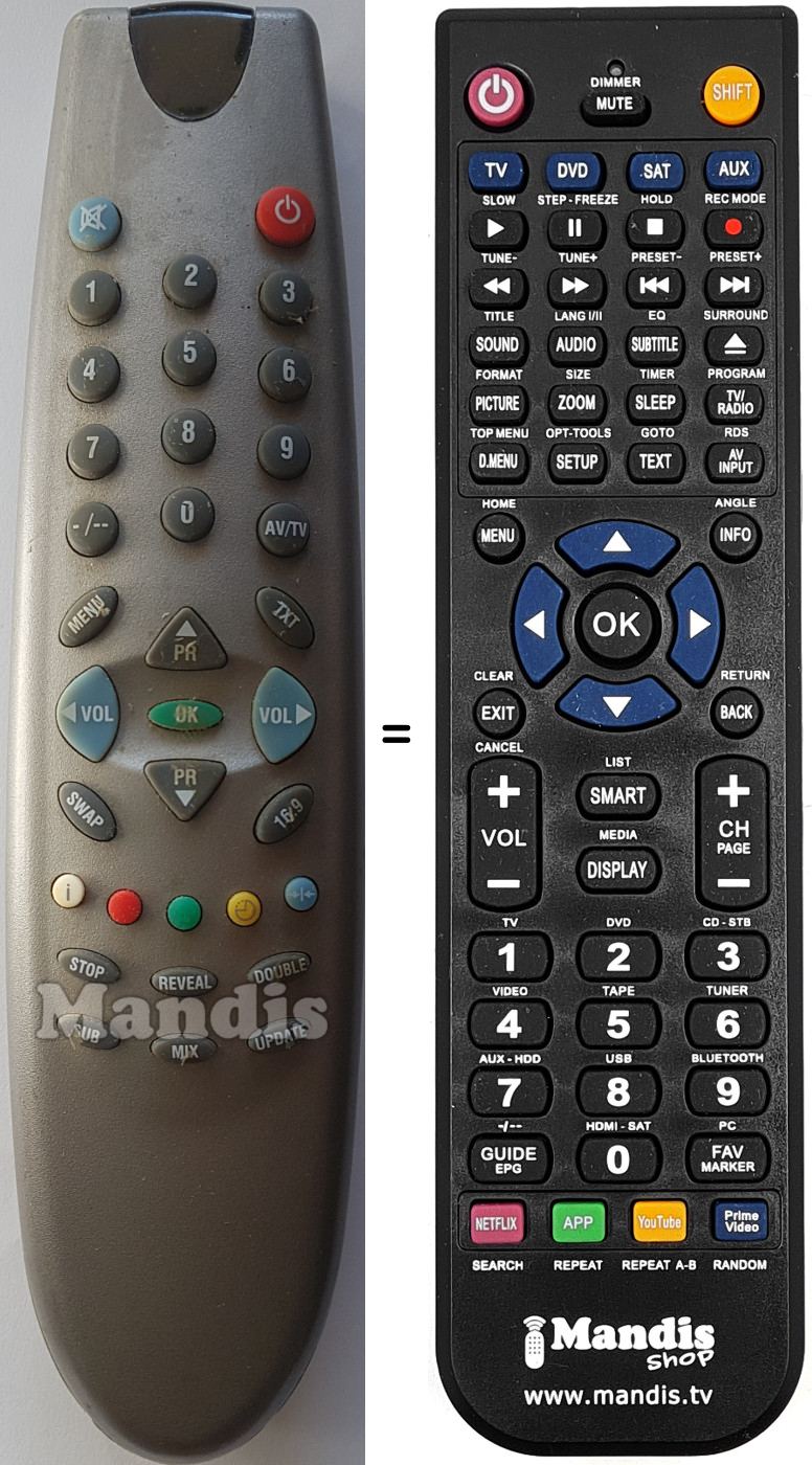 Mando a distancia que reemplaza al original en todas sus funciones.