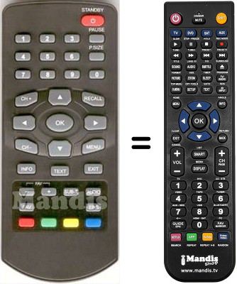 Mando a distancia que reemplaza al original en todas sus funciones. No se trata de una mando universal sinó de un mando que sustituye al original. Recibirá el mando completamente listo para hacerlo funcionar sólo necesita ponerle las pilas. No es necesario programarlo. Le damos total garantía de que el mando cumplirá con las mismas funciones del mando original.