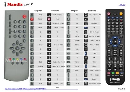 A continuación, le mostraremos la correspondencia entre cada uno de los botones del mando original y el botón que realiza la misma función en el mando de sustitución. En algunos casos, es posible que necesite presionar la tecla SHIFT antes de pulsar otro botón para realizar ciertas acciones. Estas funciones adicionales suelen ser poco utilizadas y se incluyen para facilitar su comprensión del nuevo mando a distancia, o porque el mando original tiene más botones que su equivalente.