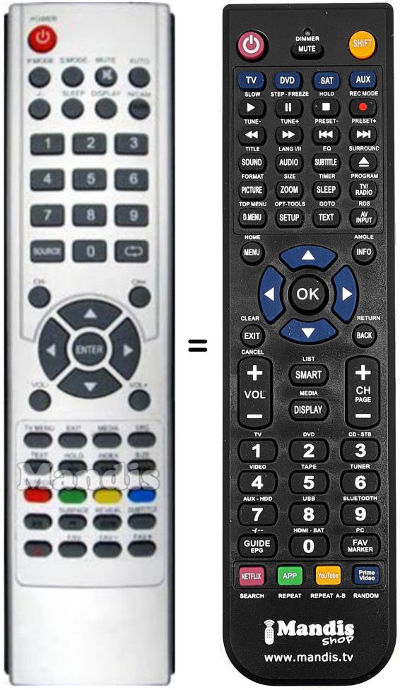 Mando a distancia que reemplaza al original en todas sus funciones.