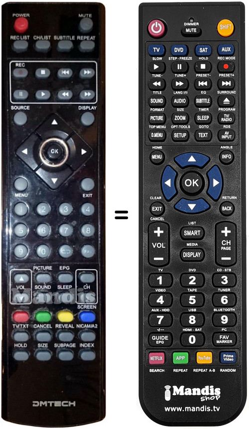 Mando a distancia que reemplaza al original en todas sus funciones.