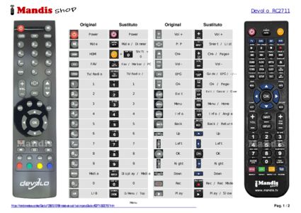 Este mando a distancia reemplaza completamente tu RC2711 (30072157) y ofrece todas las funciones del original.