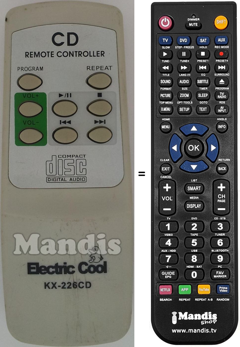 Sí, el comandament equivalent realitza totes les funcions, fins i tot quan el comandament original controla diversos aparells. Al comandament equivalent es poden programar els camps de diferents aparells (TV, DVD, SAT i AUX) d'aquesta manera es pot incloure totes les funcions del comandament original. Si visualitza el manual de les tecles (instruccions del comandament a distància) podrà comprovar que hi ha totes les funcions.