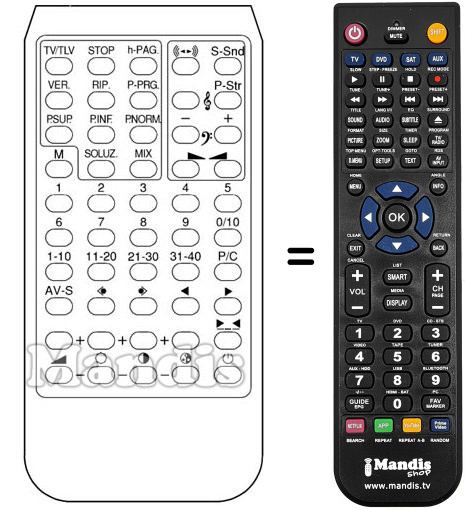 Mando a distancia que reemplaza al original DIGIT TELETEXT en todas sus funciones.
