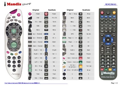 A continuación, le mostraremos la correspondencia entre cada uno de los botones del mando original y el botón que realiza la misma función en el mando de sustitución. En algunos casos, es posible que necesite presionar la tecla SHIFT antes de pulsar otro botón para realizar ciertas acciones. Estas funciones adicionales suelen ser poco utilizadas y se incluyen para facilitar su comprensión del nuevo mando a distancia, o porque el mando original tiene más botones que su equivalente.