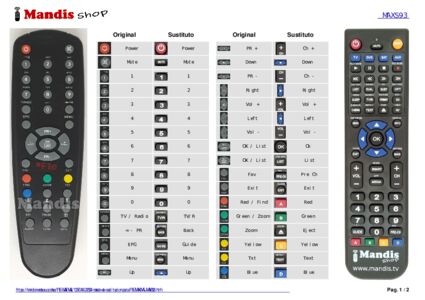 A continuación, le mostraremos la correspondencia entre cada uno de los botones del mando original y el botón que realiza la misma función en el mando de sustitución. En algunos casos, es posible que necesite presionar la tecla SHIFT antes de pulsar otro botón para realizar ciertas acciones. Estas funciones adicionales suelen ser poco utilizadas y se incluyen para facilitar su comprensión del nuevo mando a distancia, o porque el mando original tiene más botones que su equivalente.