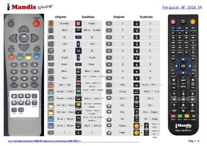A continuación, le mostraremos la correspondencia entre cada uno de los botones del mando original y el botón que realiza la misma función en el mando de sustitución. En algunos casos, es posible que necesite presionar la tecla SHIFT antes de pulsar otro botón para realizar ciertas acciones. Estas funciones adicionales suelen ser poco utilizadas y se incluyen para facilitar su comprensión del nuevo mando a distancia, o porque el mando original tiene más botones que su equivalente.