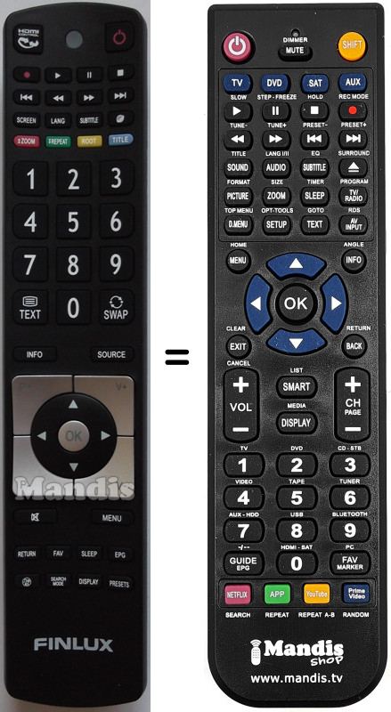 Mando a distancia que reemplaza al original en todas sus funciones.