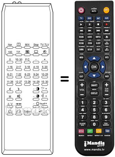Mando a distancia que reemplaza al original en todas sus funciones. No se trata de una mando universal sinó de un mando que sustituye al original. Recibirá el mando completamente listo para hacerlo funcionar sólo necesita ponerle las pilas. No es necesario programarlo. Le damos total garantía de que el mando cumplirá con las mismas funciones del mando original.
