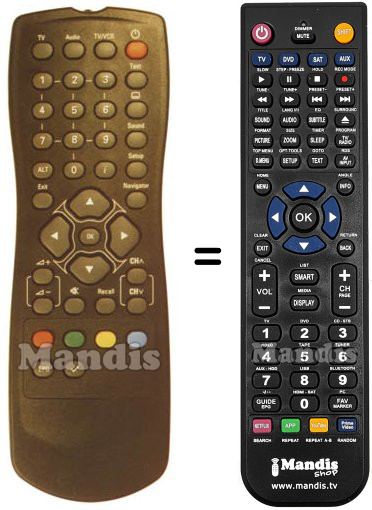 A continuación, le mostraremos la correspondencia entre cada uno de los botones del mando original y el botón que realiza la misma función en el mando de sustitución. En algunos casos, es posible que necesite presionar la tecla SHIFT antes de pulsar otro botón para realizar ciertas acciones. Estas funciones adicionales suelen ser poco utilizadas y se incluyen para facilitar su comprensión del nuevo mando a distancia, o porque el mando original tiene más botones que su equivalente.