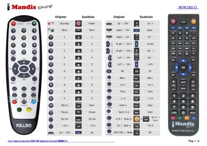 A continuación, le mostraremos la correspondencia entre cada uno de los botones del mando original y el botón que realiza la misma función en el mando de sustitución. En algunos casos, es posible que necesite presionar la tecla SHIFT antes de pulsar otro botón para realizar ciertas acciones. Estas funciones adicionales suelen ser poco utilizadas y se incluyen para facilitar su comprensión del nuevo mando a distancia, o porque el mando original tiene más botones que su equivalente.