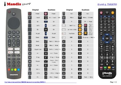 A continuación, le mostraremos la correspondencia entre cada uno de los botones del mando original y el botón que realiza la misma función en el mando de sustitución. En algunos casos, es posible que necesite presionar la tecla SHIFT antes de pulsar otro botón para realizar ciertas acciones. Estas funciones adicionales suelen ser poco utilizadas y se incluyen para facilitar su comprensión del nuevo mando a distancia, o porque el mando original tiene más botones que su equivalente.
