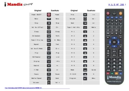 Inicio > Marcas > Mandos a distancia H & B > Mando a distancia para H & B HF288I