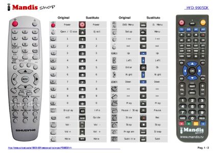 A continuación, le mostraremos la correspondencia entre cada uno de los botones del mando original y el botón que realiza la misma función en el mando de sustitución. En algunos casos, es posible que necesite presionar la tecla SHIFT antes de pulsar otro botón para realizar ciertas acciones. Estas funciones adicionales suelen ser poco utilizadas y se incluyen para facilitar su comprensión del nuevo mando a distancia, o porque el mando original tiene más botones que su equivalente.