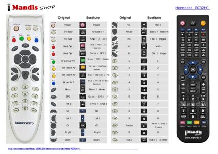 A continuación, le mostraremos la correspondencia entre cada uno de los botones del mando original y el botón que realiza la misma función en el mando de sustitución. En algunos casos, es posible que necesite presionar la tecla SHIFT antes de pulsar otro botón para realizar ciertas acciones. Estas funciones adicionales suelen ser poco utilizadas y se incluyen para facilitar su comprensión del nuevo mando a distancia, o porque el mando original tiene más botones que su equivalente.