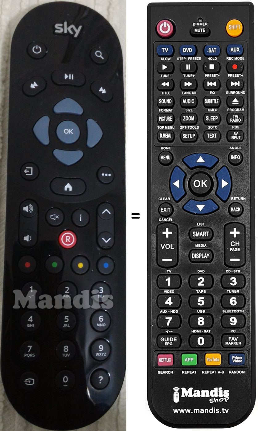 Mando a distancia que reemplaza al original en todas sus funciones.