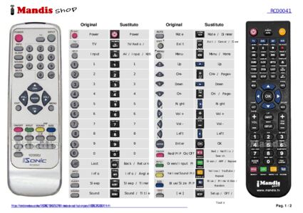 A continuación, le mostraremos la correspondencia entre cada uno de los botones del mando original y el botón que realiza la misma función en el mando de sustitución. En algunos casos, es posible que necesite presionar la tecla SHIFT antes de pulsar otro botón para realizar ciertas acciones. Estas funciones adicionales suelen ser poco utilizadas y se incluyen para facilitar su comprensión del nuevo mando a distancia, o porque el mando original tiene más botones que su equivalente.