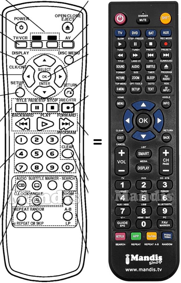 Este mando a distancia reemplaza completamente tu DVC900 y ofrece todas las funciones del original.