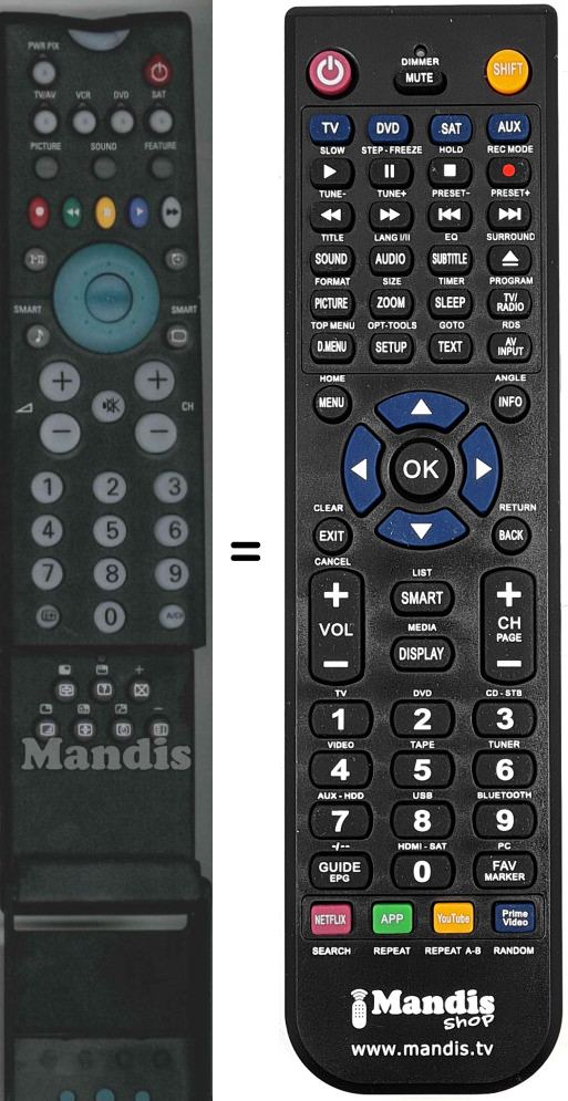 Mando a distancia que reemplaza al original en todas sus funciones.