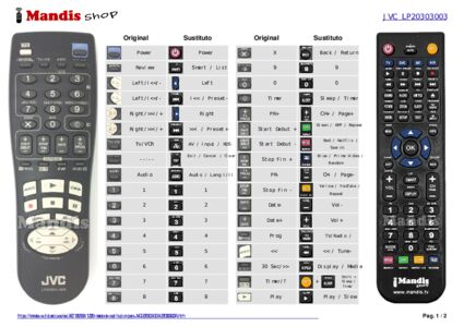 A continuación, le mostraremos la correspondencia entre cada uno de los botones del mando original y el botón que realiza la misma función en el mando de sustitución. En algunos casos, es posible que necesite presionar la tecla SHIFT antes de pulsar otro botón para realizar ciertas acciones. Estas funciones adicionales suelen ser poco utilizadas y se incluyen para facilitar su comprensión del nuevo mando a distancia, o porque el mando original tiene más botones que su equivalente.