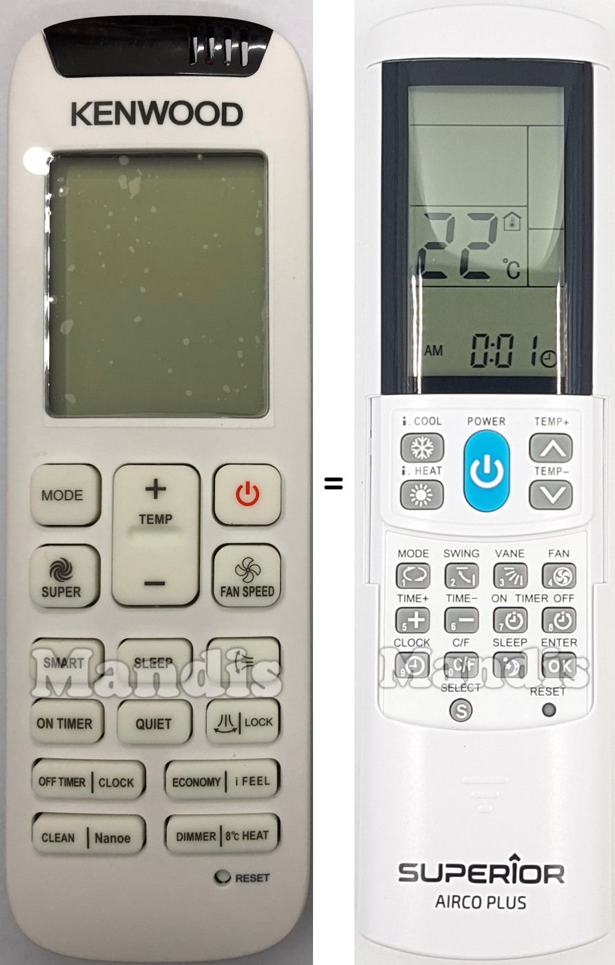 Inicio > Marcas aire acondicionado > Listado de mandos para aire acondicionado Kenwood > Mando universal KENWOOD Aircoplus (42530)