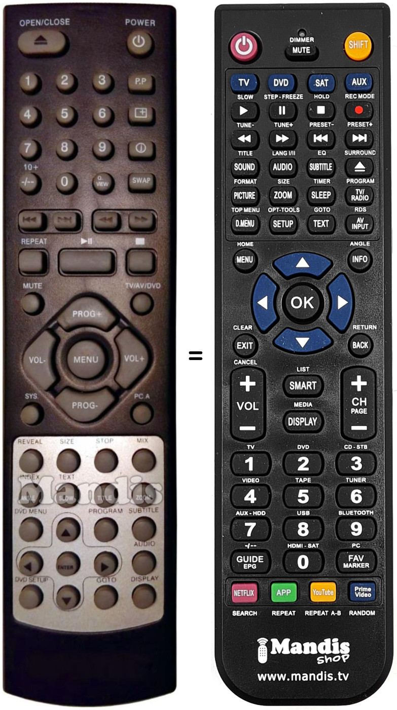 Mando a distancia que reemplaza al original DVD-DX7800 en todas sus funciones.