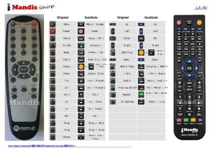 A continuación, le mostraremos la correspondencia entre cada uno de los botones del mando original y el botón que realiza la misma función en el mando de sustitución. En algunos casos, es posible que necesite presionar la tecla SHIFT antes de pulsar otro botón para realizar ciertas acciones. Estas funciones adicionales suelen ser poco utilizadas y se incluyen para facilitar su comprensión del nuevo mando a distancia, o porque el mando original tiene más botones que su equivalente.