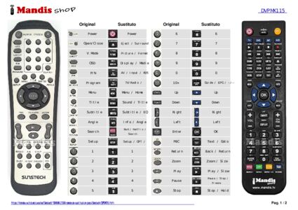 A continuación, le mostraremos la correspondencia entre cada uno de los botones del mando original y el botón que realiza la misma función en el mando de sustitución. En algunos casos, es posible que necesite presionar la tecla SHIFT antes de pulsar otro botón para realizar ciertas acciones. Estas funciones adicionales suelen ser poco utilizadas y se incluyen para facilitar su comprensión del nuevo mando a distancia, o porque el mando original tiene más botones que su equivalente.
