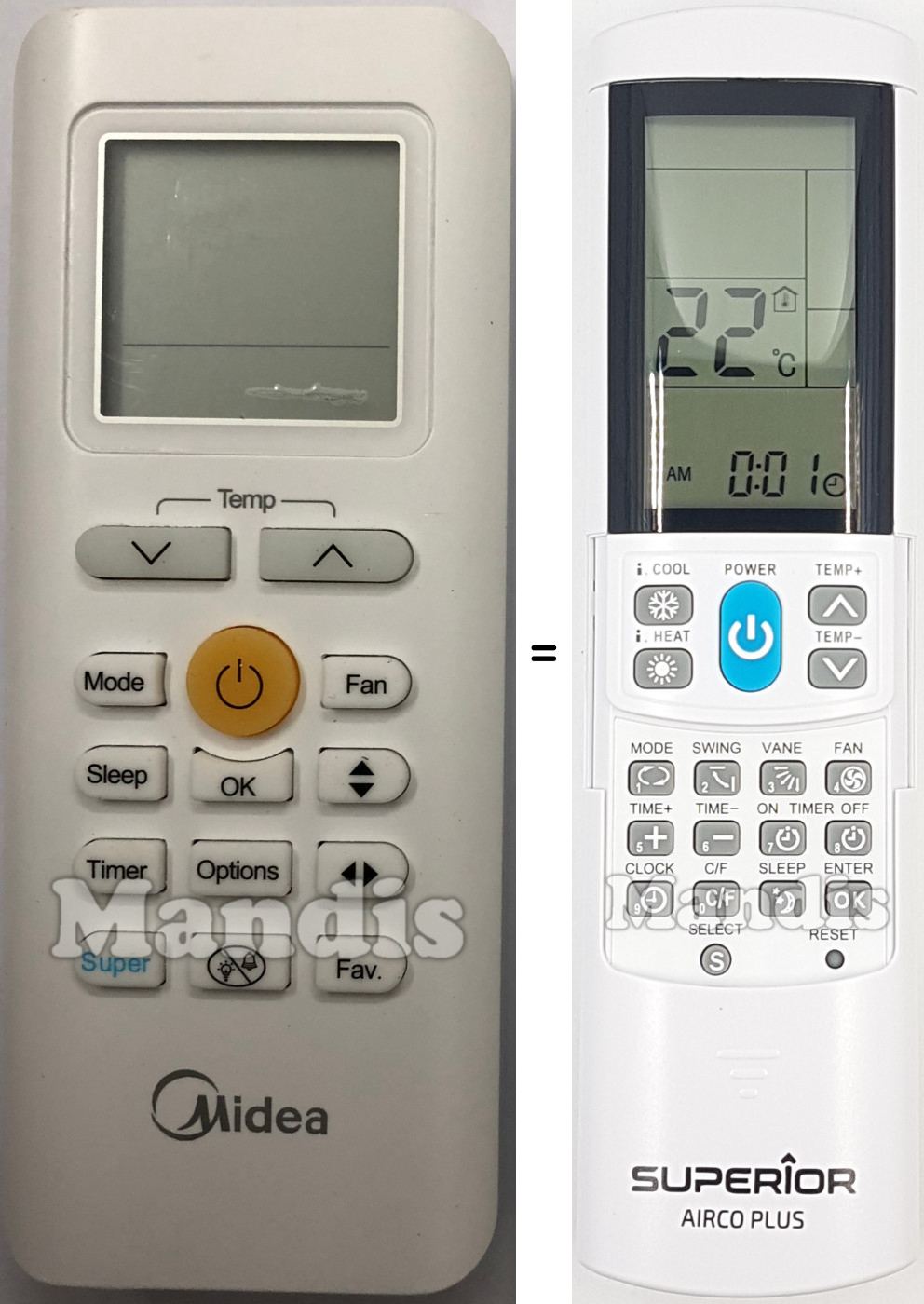 Inicio > Marcas aire acondicionado > Listado de mandos para aire acondicionado Midea > Mando universal MIDEA Aircoplus (42530)