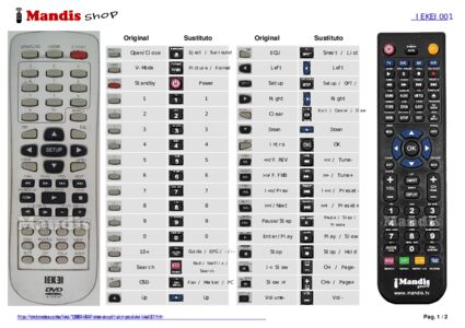 A continuación, le mostraremos la correspondencia entre cada uno de los botones del mando original y el botón que realiza la misma función en el mando de sustitución. En algunos casos, es posible que necesite presionar la tecla SHIFT antes de pulsar otro botón para realizar ciertas acciones. Estas funciones adicionales suelen ser poco utilizadas y se incluyen para facilitar su comprensión del nuevo mando a distancia, o porque el mando original tiene más botones que su equivalente.